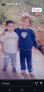 دانا الحلاني إبنة الفنان عاصي الحلاني صورة من البلدة عندما كانت صغيرة برفقة شقيقها الفنان الوليد الحلاني.