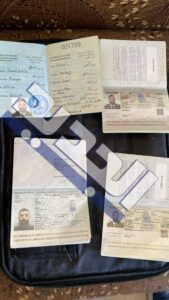 وأظهرت الصور خطوط هواتف خليوية أجنبية بالإضافة إلى هاتف محمول وجواز سفر.