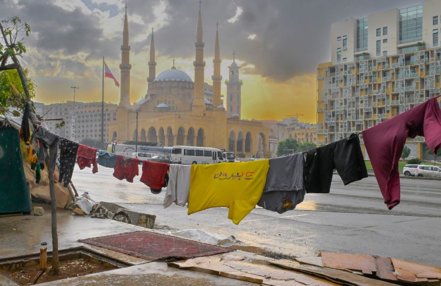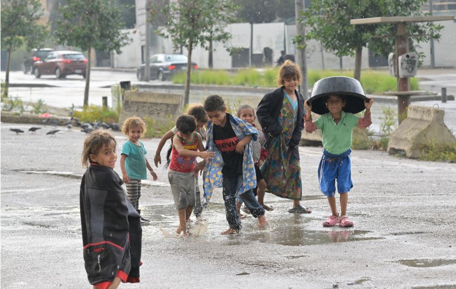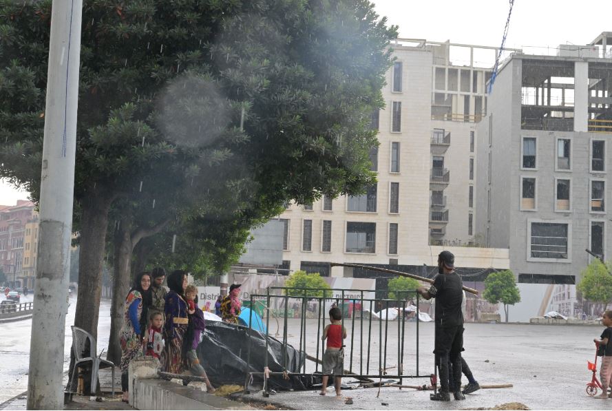 بالصور – أطفال نازحون تحت المطر في وسط بيروت