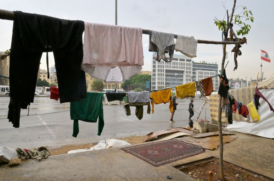 وثقت عدسة الزميل نبيل اسماعيل صورا للاولاد تحت المطر وللخيم وحبال الغسيل في وسط بيروت.