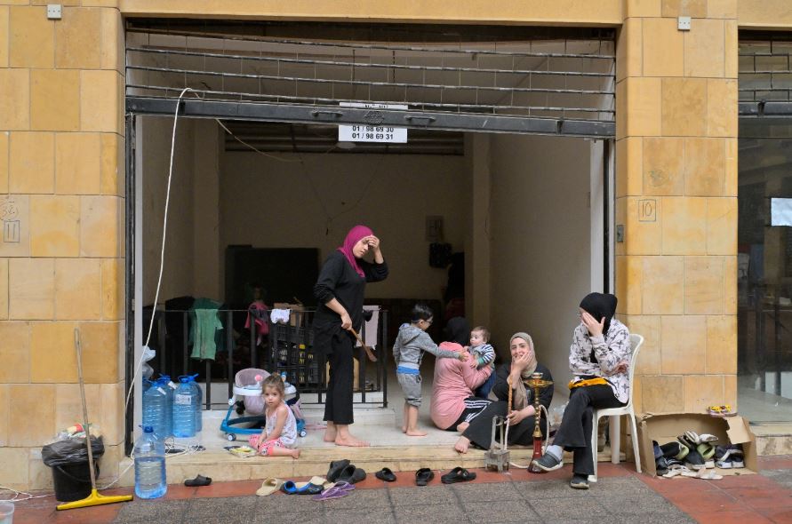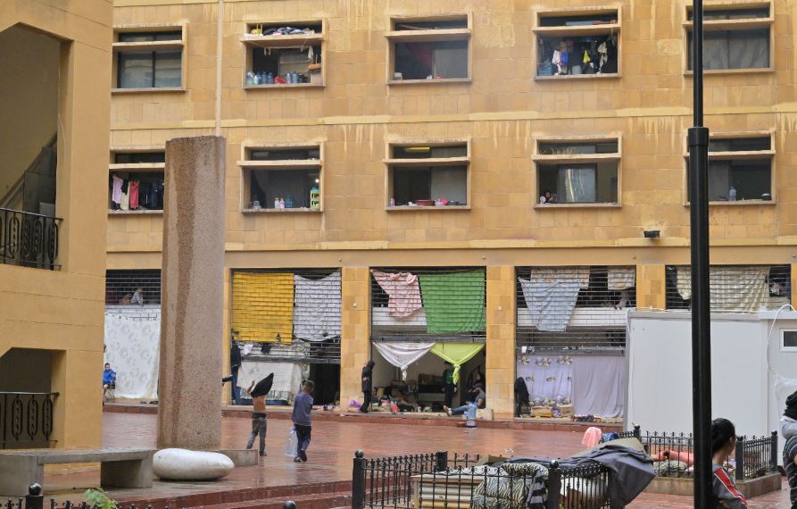 كما وثقت الصور النازحين في مبنى اللعازارية.
