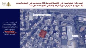 ⭕️من أجل سلامتكم وسلامة أبناء عائلتكم عليكم اخلاء هذه المباني وتلك المجاورة لها فورًا والابتعاد عنها لمسافة لا تقل عن 500 متر”