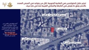 ⭕️أنتم تتواجدون بالقرب من منشآت ومصالح تابعة لحزب الله حيث سيعمل ضدها جيش الدفاع على المدى الزمني القريب