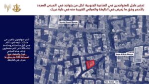 إلى جميع السكان المتواجدين في منطقة الضاحية الجنوبية وتحديدًا في المباني المحددة في الخرائط المرفقة والمباني المجاورة لها في المناطق التالية: