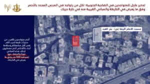 عاجل إلى جميع السكان المتواجدين في منطقة الضاحية الجنوبية وتحديدًا في المباني المحددة في الخرائط المرفقة والمباني المجاورة لها في المناطق التالية: