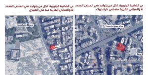عاجل إلى جميع السكان المتواجدين في منطقة الضاحية الجنوبية وتحديدًا في المباني المحددة في الخرائط المرفقة والمباني المجاورة لها في المناطق التالية: