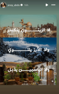 نشرت الممثلة جيسي عبدو عبر خاصية القصص القصيرة في حسابها عبر موقع انستغرام صورة جمعت فلسطين ولبنان وسوريا.
