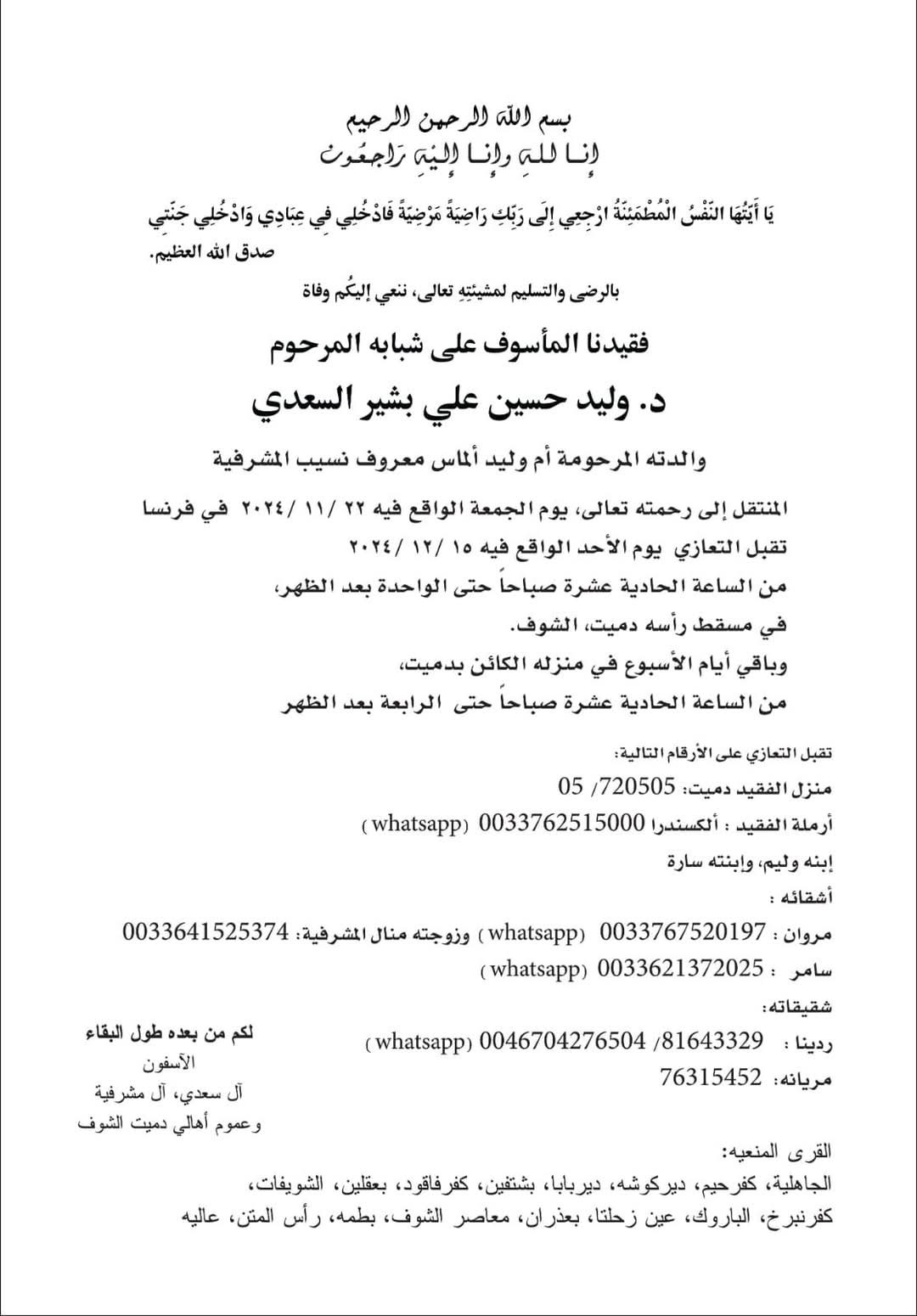 تعود القصة إلى وفاة وليد السعدي، شقيق مروان، قبل أسبوع على الأراضي الفرنسية. وليد، الذي كان يقيم في فرنسا، تُرك من دون دفن بسبب رفض شقيقه مروان دفع مبلغ 4000 يورو لتغطية تكاليف نقل الجثمان إلى لبنان أو شراء مدفن في فرنسا.
