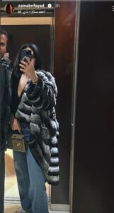 وارتدت زينب بتوب مكشوف ارتدت فوقه معطفا من الفرو.