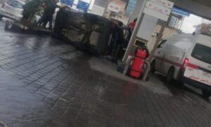 سيارة تنحرف عن مسارها وتقتحم محطة للمحروقات على طريق أنطلياس - ضبية