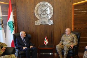 وجرى خلال اللقاء عرض للأوضاع الأمنية في البلاد ودور الجيش في عدم التهاون مع أي محاولة لزعزعة الإستقرار والسلم الأهلي في البلاد.