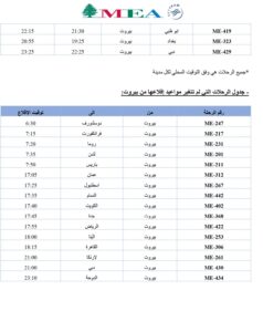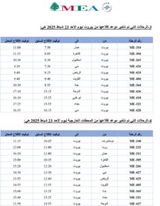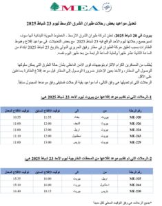 بالصور: تعديل مواعيد رحلات طيران الشرق الأوسط ليوم 23 شباط 2025