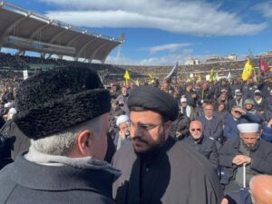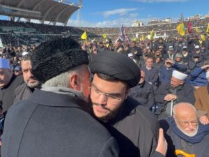 أول صورة لنجل نصرالله خلال تشييع والده.. أرسلان يعزيه بين الحشود