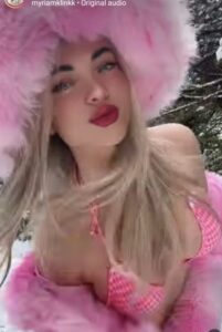 بالصور: تحدت العاصفة والصقيع.. ميريام كلينك بإطلالة جريئة على الثلج