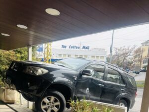 سيارة رباعية الدفع تصطدم في صيدلية يسوع الملك