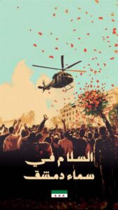 الى ذلك، نشر سامر المصري فيديو آخر يوثق الشعب السوري في حمص، حيث ارفق بالتعليق التالي: “في مشهد طال انتظاره 14 عاما.. رح تضلي يا حمص حرة”، كما نشر سامر المصري صورة توثق طائرة في سماء دمشق وهي ترمي الورود على المتظاهرين، وارفقت بالتعليق التالي: “السلام في سماء دمشق”.