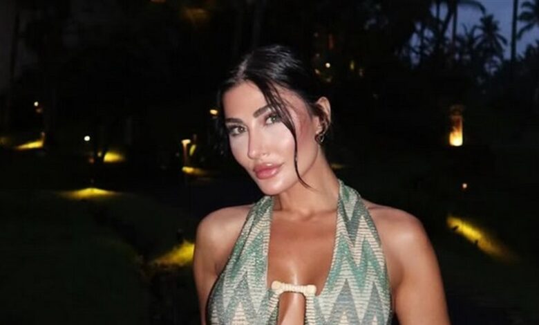 وأطلت هبة بفستان جريء مفتوح عند منطقة الصدر خلال قضاء عطلة في بالي الاندونيسية.