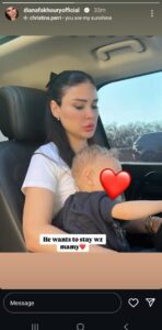 وكانت ديانا داخل السيارة مع نجلها، وقالت تعليقاً على الصورة: “يُريد البقاء مع والدته”. (رصد لبنان 24)
