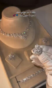 طقم الألماس جاء بتصميم خيالي راقي لفت الأنظار، وبحسب رواد الإنترنت، بلغ سعر الطقم 2 مليون دولار.
