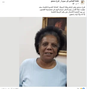 نعت نقابة الفنانين في سوريا، والعاملون في الدوبلاج، الفنانة فاطمة سعد التي جسدت بصوتها أدواراً عديدة في مسلسلات الكرتون المخصصة للأطفال، وبينها “ماوكلي” و”الكابتن ماجد”.