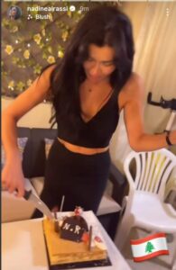 وأطلت نادين وهي هي تحتفل وتقطع قالب حلوى كتب عليه “لا حكم عليه” وذلك بعد خضوعها اليوم الثلاثاء للتحقيق في المباحث الجنائية بتهمة العمالة وذلك بعدما ادعت إحدى المحاميات عليها.