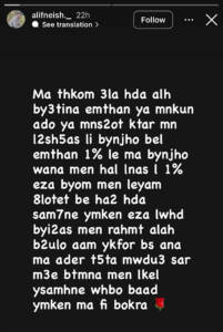 كتب علي في رسالته الأخيرة: “لم أستطع تخطّي أمرٍ حصل معي، وأتمنى من الجميع أن يسامحونني. وأدعوهم أن يحبّوا بعضهم بعضًا… لأنو يمكن ما في بكرا.”