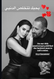 احتفل فريد رحمة زوج النجمة سيرين عبد النور بذكرى زواجهما بطريقة مميزةونشر صورة خاصة لهما بالأبيض والأسود تظهر علاقة الحب القوية التي تجمع بينهما مع عبارة “في عيد زواجنا الـ18، ما زلت أشعر بأنني أكثر رجل محظوظ لأنك ملكي”، لتردّ عليه سيرين بعبارة: “بحبك تتخلص الدنيا”.