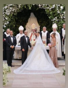 وتميز الحفل بفخامته، كما خطفت العروس الأنظار بجمالها، حيث ارتدت فستانا من توقيع المصمم اللبناني العالمي ايلي صعب.