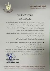 وأضاف البيان: “مع كامل الاحترام والتقدير لنقيب الموسيقيين في لبنان الأستاذ فريد بو سعيد، وللشعب اللبناني الشقيق، فإن نقابة المهن الموسيقية في مصر قررت ما يلي: