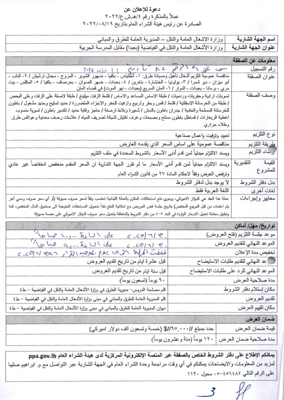 في خطوة إنمائية جديدة، أثمرت المتابعة المتواصلة لرئيس لجنة المال والموازنة النائب إبراهيم كنعان مع وزارة الأشغال العامة والنقل وديوان المحاسبة، عن تلزيم مشاريع حيوية لتعبيد وتأهيل وصيانة طرقات في المتن الشمالي، ومنها طريق انطلياس، بكفيا، ضهور الشوير، المروج، مجدل ترشيش، الدلب، أبو ميزان، دير شمرا، بولونيا، الخنشارة، بتغرين، بعبدات، ضهر الصوان، بحرصاف، بكفيا، المكلس، بيت مري، برمانا، بعبدات، الدوار، المتن السريع (بعبدات – نهر الموت) في قضاء المتن، وبلغت قيمتها نحو مليونين وستمئة ألف دولار أميركي.