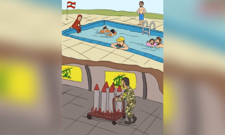 وفي التفاصيل، نشر أدرعي صورة تشبيهية لمسبح وخلفه صواريخ، معلّقاً عليها بالقول: “من برا هالله هالله، ومن جوا صواريخ الله يعلم الله وين وإمتى رح تفقع بوج المدنيين – الدروع البشرية لحزب الشيطان”.