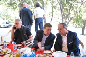 وقال “سنغيّر معادلة، مش قادرين، وكما قلت في عشاء الحبتور “يلّي قادر ما يخلينا”، فنحن نريد الانجاز. وهناك مشاريع تنفذ من طريق عينطورة القديمة الى زحلة، والعمل سينطلق في 3 طرقات في بسكنتا، مروراً بالمروج والزعرور، وجورة البلوط، وعين سعادة، وروميه التي هي على الخريطة “ومتل ما بده رئيس البلدية رح يصير لأننا نحب الضيعة كما يحبها هو”، وصولاً الى ضهر الصوان والغابة ومار موسى والدوار والعيرون وأهلاً وسهلاً برئيس بلديتها بيننا، إضافة الى كفرتي وبيت شباب وغيرها من البلدات والقرى المتنية، فهذا الانماء لبناء بلداتنا وقرانا كما يستحق أهلنا ويريدون”.