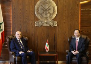 استقبل وزير الدفاع الوطني اللواء ميشال منسى في مكتبه في اليرزة اليوم السفير الصيني في لبنان تشن تشواندونغ، وتمّ خلال اللقاء التطرّق إلى الأوضاع العامة والعلاقات الثنائية بين البلدين وسبل تطوير التعاون القائم. وشكر وزير الدفاع الوطني الصين على ما تقدّمه لصالح لبنان وللمؤسّسة العسكريّة بشكل خاص، بما يساهم في تعزيز صمود الجيش وقدراته العملانية.