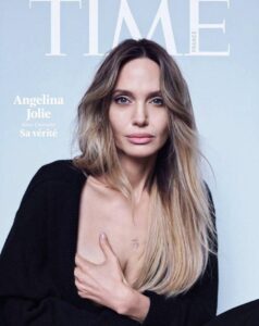 وعلى غلاف مجلة “تايم” بنسختها الفرنسية، أطلت جولي وهي تضع يدها على صدرها العاري لتسليط الضوء بشكل خفيف على الندبة، التي تظهر بين إبهامها ولون بشرتها.