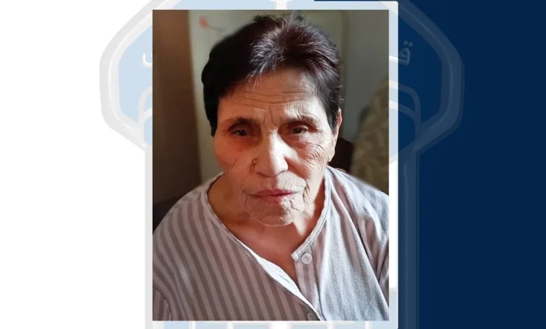 التي غادرت بتاريخ 19-12-2025 منزلها في الحدث، ولم تعد حتّى تاريخه. علمًا أنّها مصابة بمرض ألزهايمر.