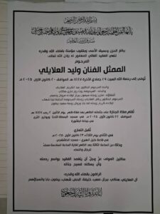 وسيتم تقديم التعازي يوم الثلاثاء 23 كانون الأول 2025 في قاعة خليل الهبري– مسجد الخاشقجي، وذلك من الساعة الثالثة بعد الظهر وحتى الساعة السادسة مساءً، للرجال والنساء.