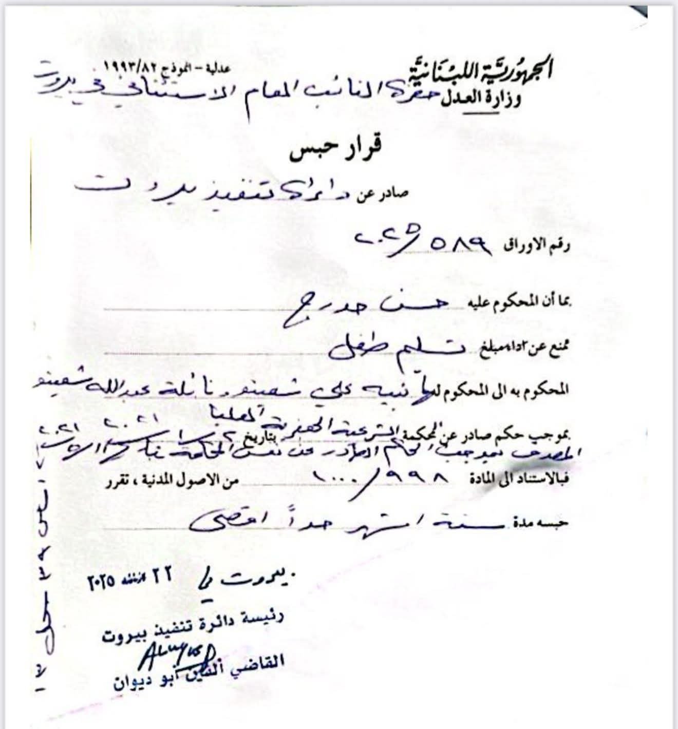 أصدر القضاء اللبناني قرارًا بحبس حسن حدرج، زوج ليليان شعيتو، بعد ثبوت امتناعه عن تنفيذ حكم قضائي سابق يقضي بتمكين زوجته من رؤية طفلها، وقيامَه بتهريب الطفل إلى مكان مجهول خارج البلاد.