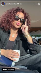 نشرت الممثلة الكوميدية أمل طالب صورة عبر خاصية “الستوري” على حسابها الرسمي في إنستغرام، ظهرت فيها بإطلالة عفوية خلال تواجدها في الأردن، مرفقة بموقع “Yala Jordan”. ولاقت الصورة تفاعلًا واسعًا من متابعيها، الذين أثنوا على إطلالتها وأجواء الاسترخاء التي عكستها اللقطة.