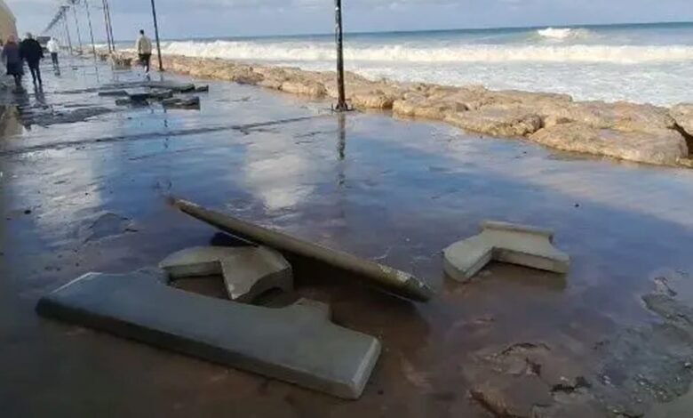 تسبب المنخفض الجوي السريع الذي تأثر به لبنان والحوض الشرقي للبحر المتوسط، يوم امس الجمعة، وترافق مع كتل هوائية باردة على طول الخط الساحلي الجنوبي، لا سيما لجهة الواجهة البحرية لملعب صيدا البلدي، بتكسر معظم المقاعد الاسمنتية في ممشى هواة الرياضة البحري لمدينة رفيق الحريري، بفعل غزارة الامطار وتسارع الرياح وتشكل الانواء البحرية التي ادت الى ارتفاع الموج امتاراً بلغت حدته تجاوز الحاجز الصخري لممشى الهواة الرياضيين في المقلب البحري لمدينة رفيق الحريري الرياضية، جارفاً معه معظم المقاعد الاسمنتية الموضوعة في المكان بعدما تكسرت وتحولت الى اجزاء متناثرة .