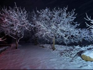 تناقل ناشطون عبر مواقع التواصل الإجتماعي صوراً رائعة من منطقة الضنية، وأظهرت غابة غمرتها الثلوج بفعل العاصفة التي تضرب لبنان. كذلك، برزت عبر الصور الأشجار التي غطتها الثلوج، بالإضافة إلى التلال التي أحاطت بها والتي ارتدت الثوب الأبيض.