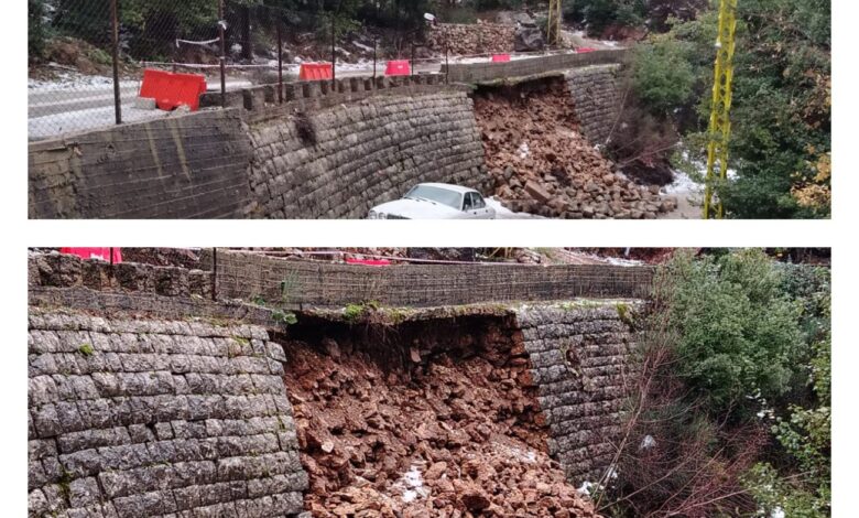 انهيار الحائط أدى الى انخساف الطريق حتى منتصفها، ما يعرّض سلامة المواطنين للخطر.