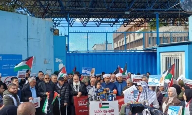 نظمت “لجنة الدفاع عن حقوق اللاجئين الفلسطينين في لبنان* و”اللاجئين الفلسطينيين من سوريا” و”الحراكات الشعبية في المخيمات” اعتصاما، أمام مقر “الأونروا” في بيروت ، شارك فيه ممثلون عن الفصائل الفلسطينية والمؤسسات الاهلية واللجان الشعبية وفاعليات من مختلف المخيمات والمشايخ.