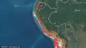 وأضاف أنه قد تجمعت الزلازل الكبرى في السنوات الأخيرة في أميركا الجنوبية بشكل أساسي تحت بيرو والإكوادور، ما أدى إلى زيادة الضغط في المنطقة بالقرب من الساحل.