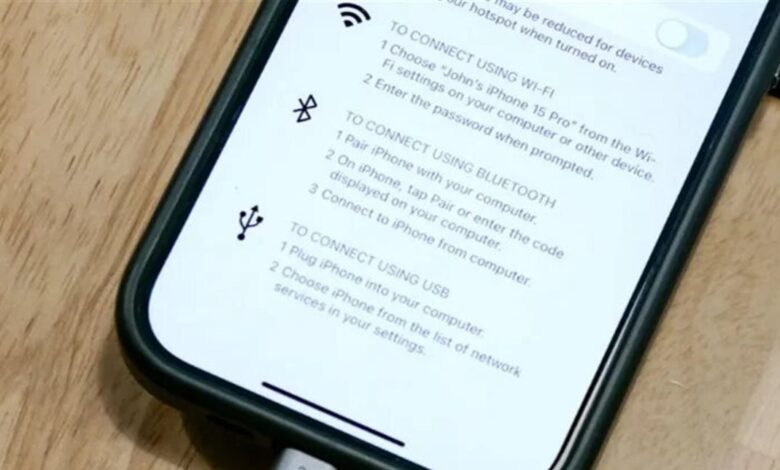 خطوات استخدام مشاركة الإنترنت عبر USB على آيفون
