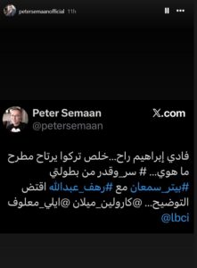 في تصرف أثار العديد من الاستغراب والاستهجان، كتب الممثل بيتر سمعان منشورا عبر خاصية الستوري على حسابه الخاص على تطبيق