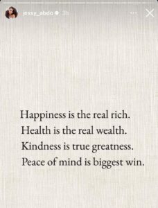 نشرت الممثلة جيسي عبدو عبر حسابها الرسمي على إنستغرام رسالة إيجابية ملهمة، أكدت فيها أن السعادة تمثل