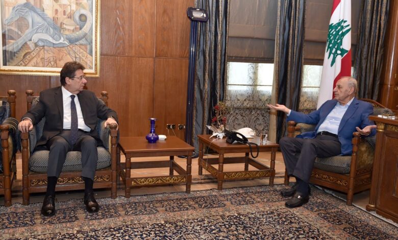 التقى رئيس مجلس النواب نبيه بري رئيس لجنة المال والموازنة النائب ابراهيم كنعان في عين التينة.