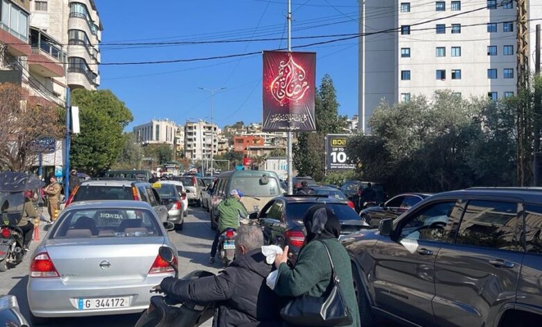 زحمة سير خانقة عند مداخل الضاحية الجنوبية لبيروت مع بدء خروج السكان من منازلهم بعد الإنذار الإسرائيلي
