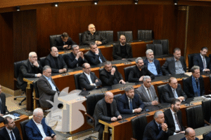 كذلك، نشرت “النهار” صورة أخرى لكتلة “الوفاء للمقاومة” وهي تحضر داخل القاعة العامة للبرلمان، حيث حضرت بكامل أعضائها.