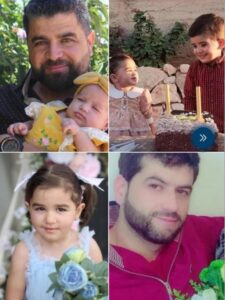 والشهداء هم: حسين محمد النمر – زوجته أسماء الكحيل وأولادهم: محمد حسين النمر، فلك حسين النمر، حافظ محمد النمر، وسارة محمد النمر.